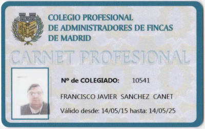 Francisco Javier Sánchez Canet, lleva 20 años al frente de la administración de fincas, tanto en la Comunidad de Madrid, como en la comunidad Valenciana. Después de terminar los estudios de Técnico Superior en Administración y Finanzas, inicio los estudios de Ciencias Empresariales en la Universidad de Valencia, graduándose posteriormente en Economía por la Open University. Se encuentra colegiado en el Ilustre Colegio de Titulares Mercantiles y Empresariales de León con el nº 1.013 de colegiado. Es miembro economista de los profesionales de la Unión europea. En 1.990 inicio los estudios de primer ciclo universitario de Experto (hoy grado en administración de fincas), en la Universidad de Alcalá de Henares, siendo el titulado nº 1.436 de la promoción de la Diplomatura del año 1.993.